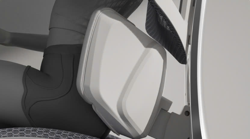Hỗ trợ cổ tối ưu ở mọi tư thế và chiều cao. Xoay hai trục 70°. Điều chỉnh dọc 4.5cm, ngang 5.5cm