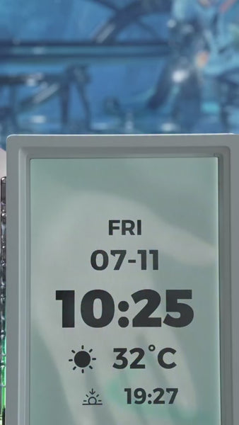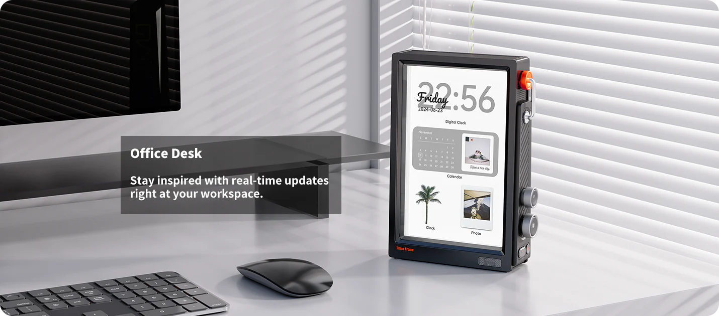 Màn hình lớn hiển thị giờ, dự báo thời tiết, thông báo… biến thành “trợ thủ” trên bàn làm việc hoặc kệ phòng khách, thể hiện cảm giác hiện đại và công nghệ tương lai .